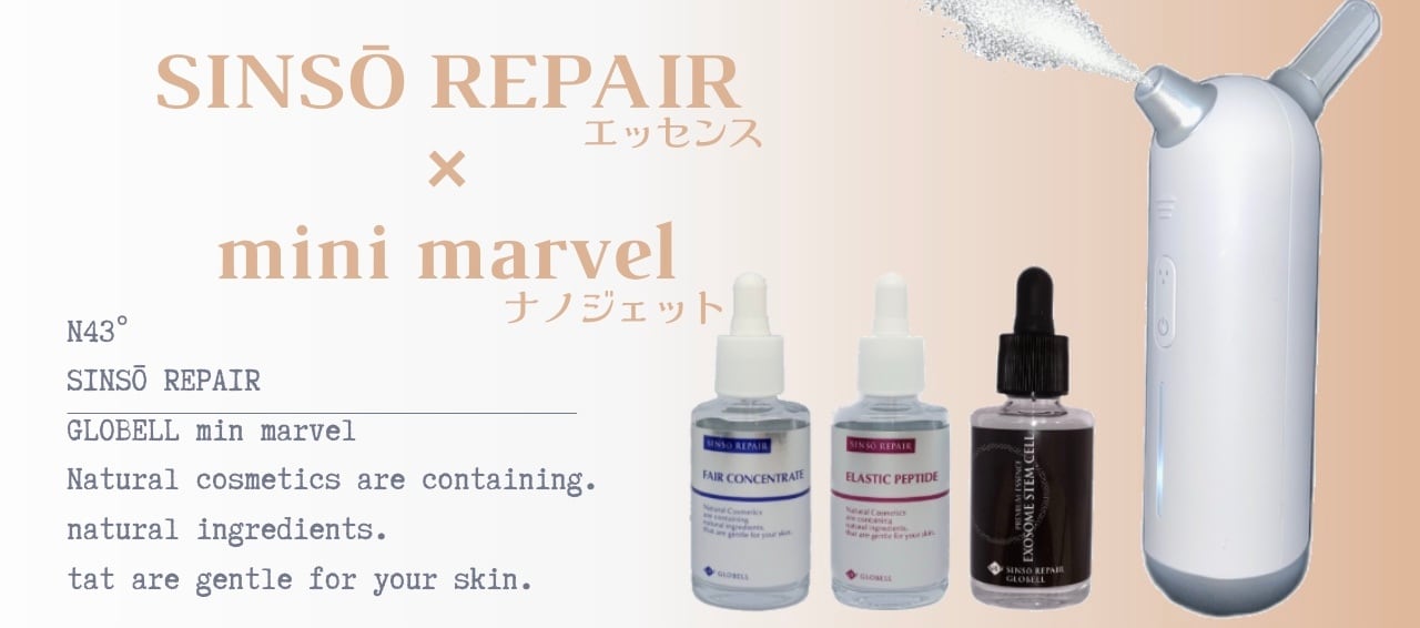 SINSŌ REPAIR エッセンス3種類(エクソソームステムセル・エラスティックペプチド・フェアコンセントレイト)をセットでご購入の方、mini marvel ナノジェット(16,500円税込)をプレゼント。